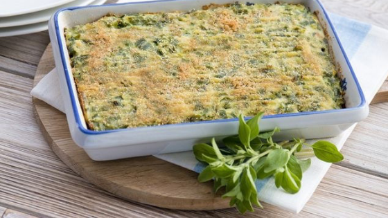 - Turn the oven on to 180°. Butter an oven dish and sprinkle it with breadcrumbs, gently spread the mixture making an even layer of about 2 centimeters. Line the surface with the tines of a fork, sprinkle with a little breadcrumbs, garnish with a few butter flakes and bake for 25-30 minutes until the surface is lightly browned.